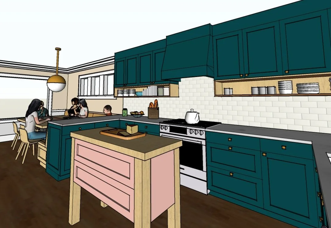 In addition to line-drawings (floor plans, interior elevations, electrical plans… etc) we also provide renderings as a tool to help you imagine what the space will look like when it’s built!